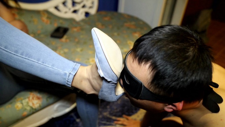 内容:新来个小瘦奴,喵女神决定让这个贱货试试舔鞋底吸吮鞋跟,感觉这贱货有点呆,赏赐他点口水吐在鞋底,贱狗屁颠屁颠的伸出舌头去舔,随即就埃了一个大耳光,是用鞋抽的,贱狗立刻沙雕了。喵女神拿起高跟鞋命令贱狗伸出舌头,用鞋底在他的舌头上蹭。 然后女神伸出脚给贱狗闻闻脚趾缝的味道,这贱货又陶醉了,一顿大耳光教育,接着用脚左右开弓一顿抽,最后一脚踹脸上躺在地上,被女神踩在脚下。