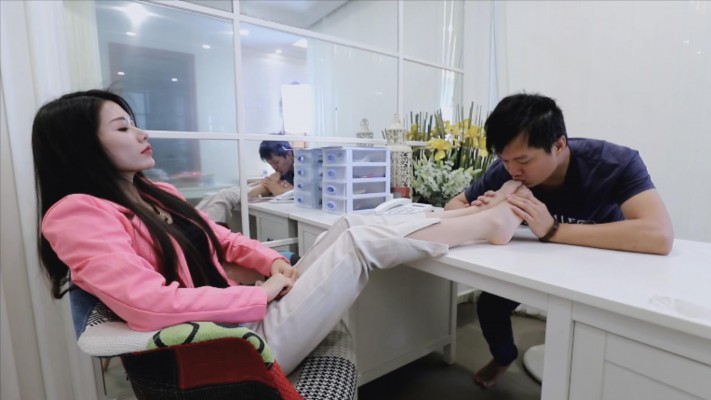 【内容简介】:芷晴上班路上不小心崴脚了,于是脱下鞋,拎着高跟鞋去上班。回办公室后穿着丝袜洗脚,之后发现下属在偷偷闻她的鞋,于是拿手机拍了下来。芷晴下班后把下属叫到办公室,将这件事告诉了他,威逼利诱下属给自己舔脚伺候。回家路上,接到了闺蜜的电话,闺蜜告诉了她一件事,她瞬间不淡定了......