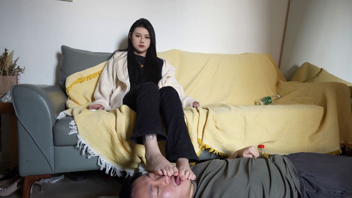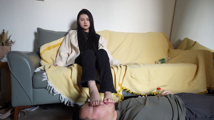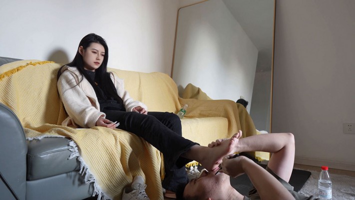 高潮是那双还冒着热气的脚突然夹住他疲软的舌头,脚趾拧转的力度让涎水从嘴角瀑布式喷溅,微微女王脚掌在脚奴脸上的重击声和呜咽声形成美妙的二重奏。
