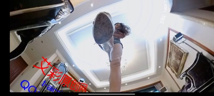 芷晴用两只大楼高的鞋子挡住小人的去路,蹲下来用一只手指就能制服小人。