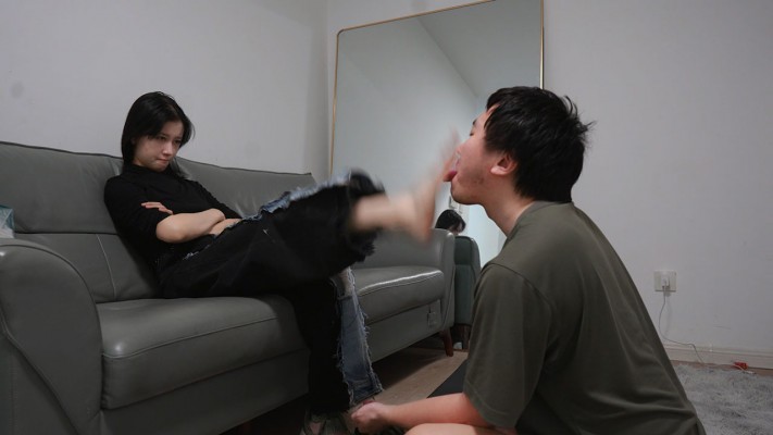 内容:来自舞蹈系北京陌黎女王的史上最狠脚耳光,脚抬到比头还要高的位置然后在两秒内快速砸下来,全部力道都在男奴的脸上发出清脆的爆响,裸足和黑丝都有,不止脚奴的脸要挨打,舌头也没有放过一样用脚扇红为止。