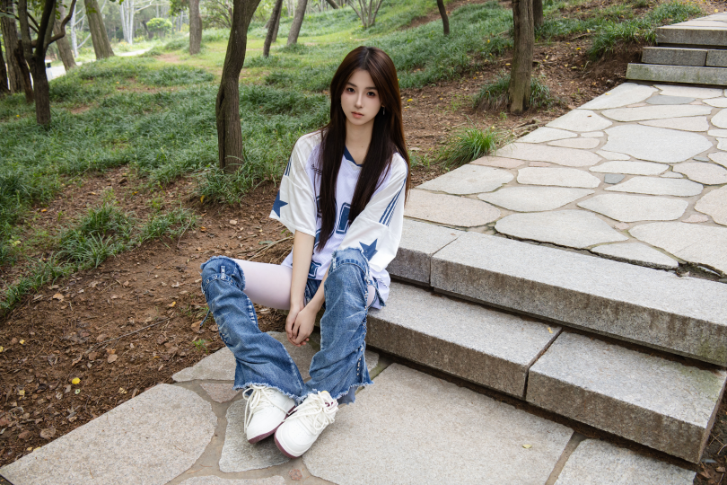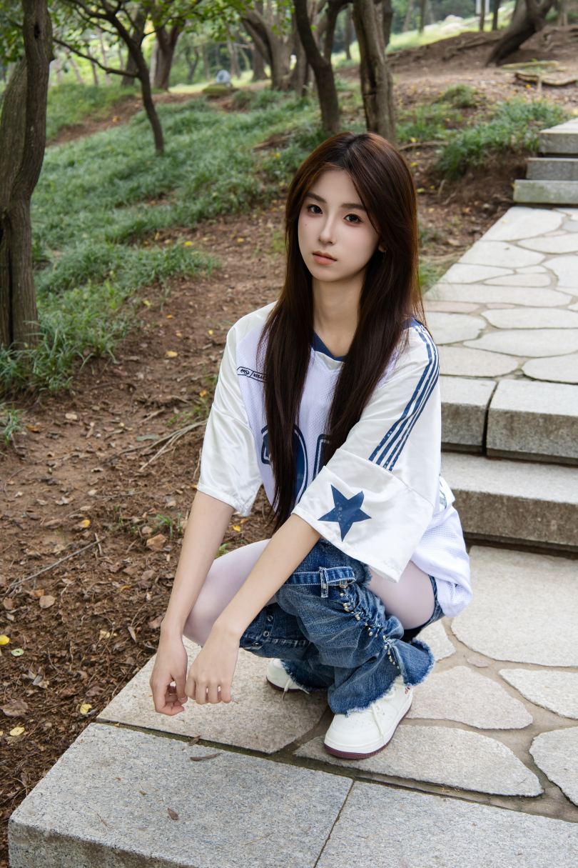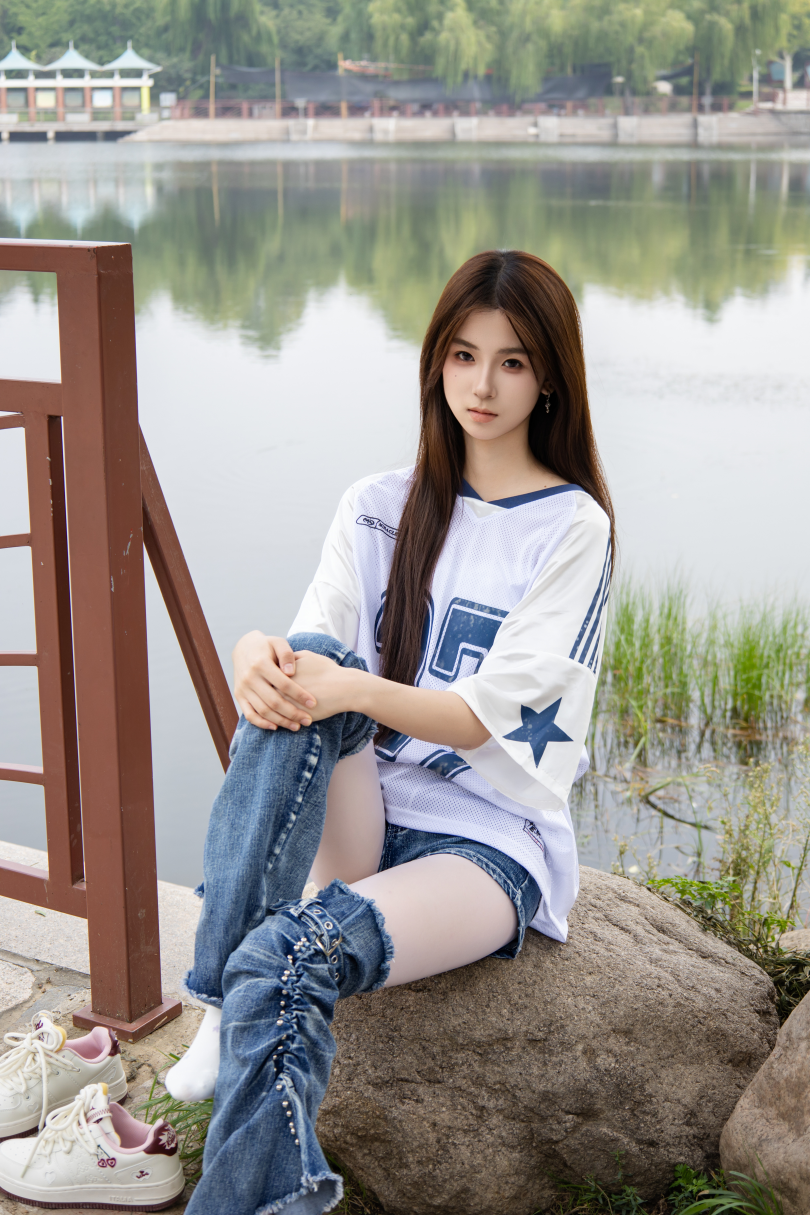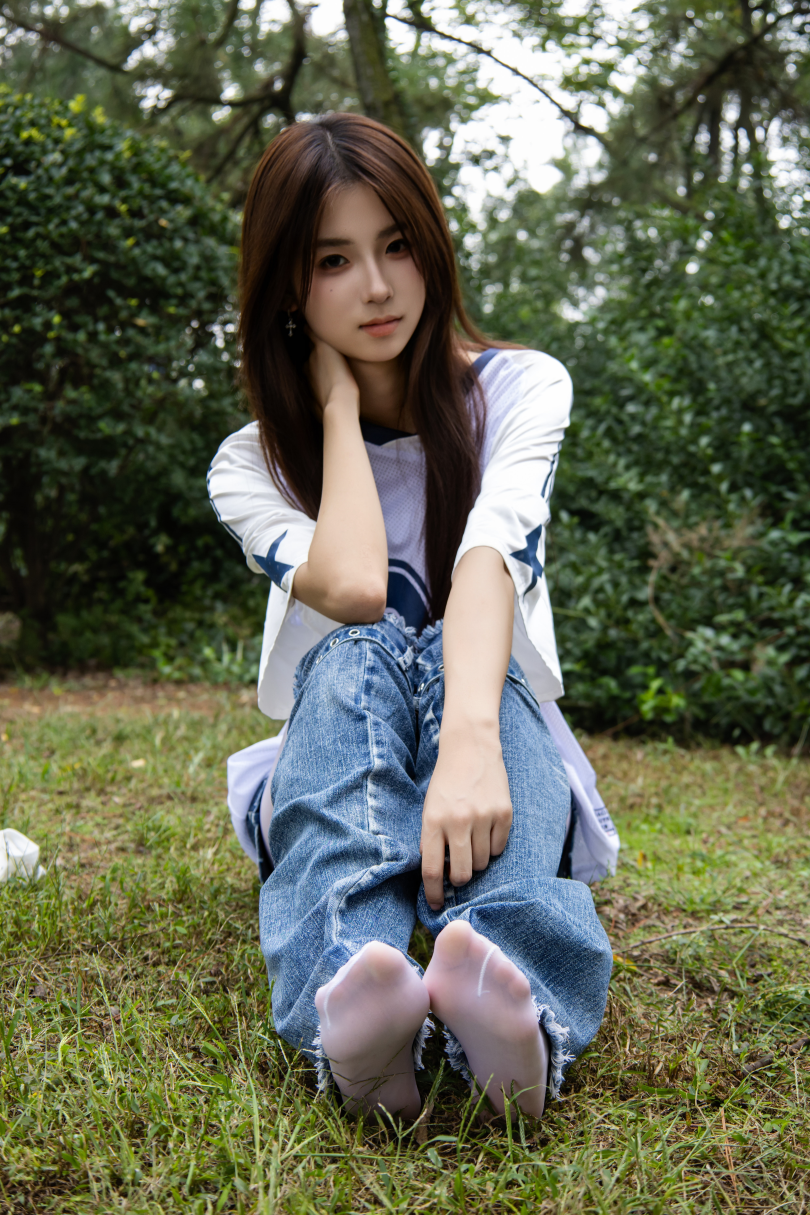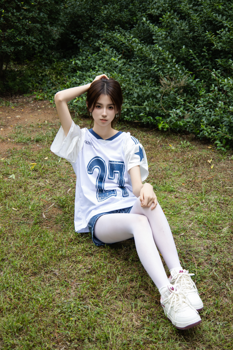 足愉心摄影第73期:模特小瑶(搭配:白色体恤、牛仔短裤、牛仔腿套、白色丝袜、白色棉袜、板鞋)