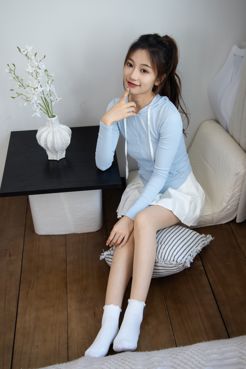 足愉心摄影第62期:模特伊伊(搭配:蓝色卫衣、白色短裙、麦昆鞋、肉色丝袜、白色棉袜)