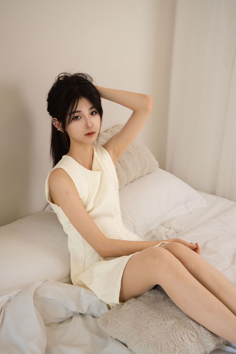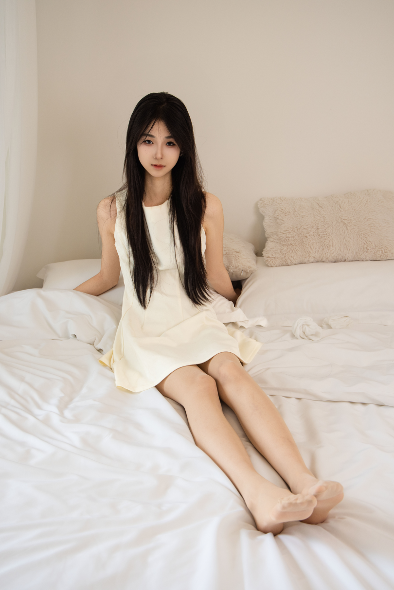 足愉心摄影第57期:模特小瑶(搭配:白色连衣裙、白棉袜、帆布鞋、肉色丝袜)