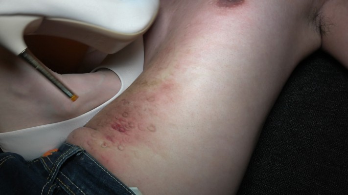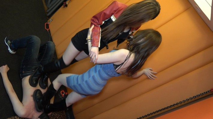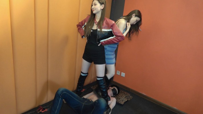 艾琳175和领主老大双主爆踩瘦狗,凶狠程度压迫感极强。高跟鞋一个踩肚子,一个踩胸口,双倍痛苦,在瘦狗身上舞动踩踏,踩肚子基本上都是鞋跟整个进去到肚子里,看不到鞋跟,高跟跳踩一直踩到肚子出血,在这么瘦的贱狗身上下脚狠毒程度令人发指,贱狗多次被迫中断,中断回来高跟依然无情踩踏。完全无视瘦狗的痛苦。中途双主想玩平底靴蹦迪踩踏,瘦狗以为这回轻松了,可现实不是那样。一个踩住脖子,一个在肚子上,放着嗨曲,双主一起蹦迪,一起跳起来,压迫感令瘦狗喘不上气,处在崩溃边缘,玩嗨了的双主才不管瘦狗的感受,继续在脖子上,头上舞动跳踩,剁踩,在肚子上肆无忌怠的舞动踩踏。在双主将近200斤的体重高跟踩和平底靴踩踏下,可怜的瘦狗最后真的就剩半条命了。